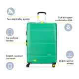 - 360° Spinner Wheels: Experience the sheer joy of smooth travels with four double-spinner wheels, each adorned with branded wheel caps.